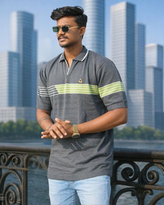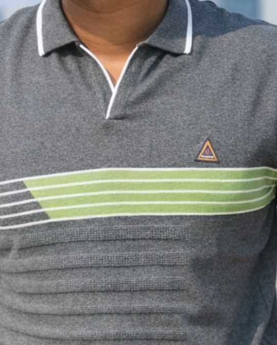 Level up your everyday style with this classic knit polo neck t-shirt that perfectly blends comfort with modern design. Crafted for men who like to keep it smart yet effortless, this t-shirt features a subtle striped pattern across the chest with a refreshing olive green contrast that adds character without going overboard.