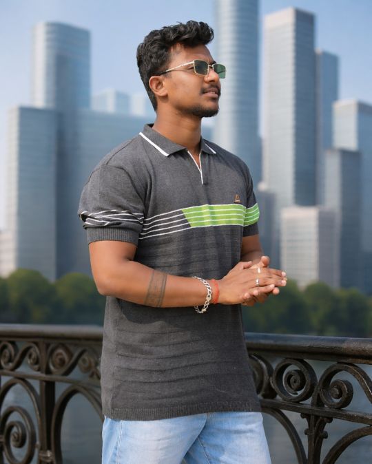 The structured knit fabric offers a premium feel while ensuring breathability, making it ideal for long hours of wear. Whether you’re heading to a casual office day, a weekend outing, or an evening get-together, this polo t-shirt keeps you looking sharp and confident. Pair it with jeans, chinos, or trousers for a clean and versatile look.