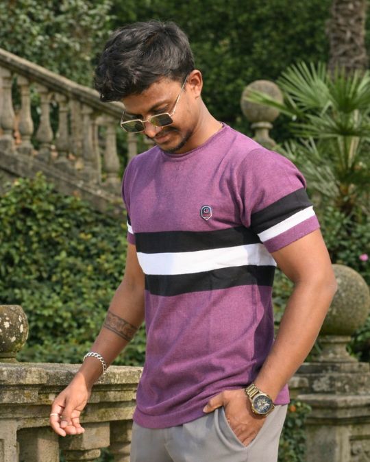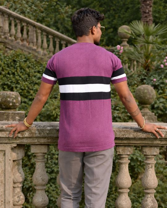This men’s knit T-shirt features base highlighted with horizontal stripes, giving it a bold and stylish look. Made from premium cotton knit fabric, it offers breathability and all-day comfort. The classic round neck and regular fit make it suitable for daily wear, casual outings, and relaxed weekends. Pair it with jeans or chinos for an effortless casual style.