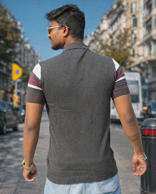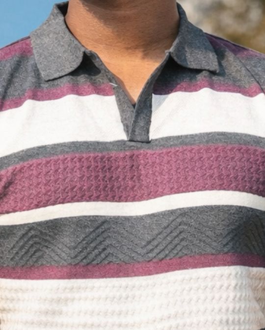 Men’s Striped Knit Polo Neck Half Sleeves T-Shirt