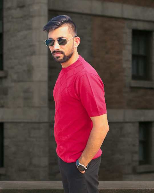 Crafted from soft knit fabric, this t-shirt ensures breathable comfort and a structured fit. The classic round neckline and ribbed hem enhance durability and provide a neat silhouette. Its versatile design makes it perfect for casual outings, smart-casual styling, or weekend wear.