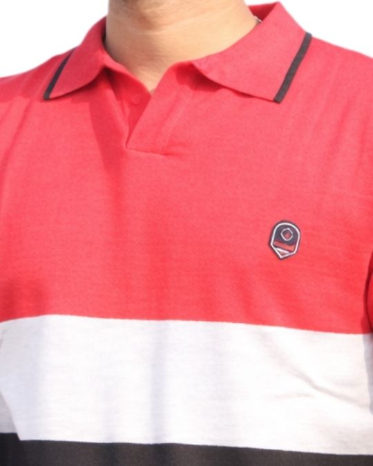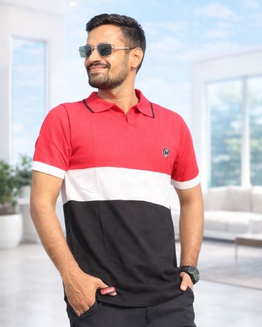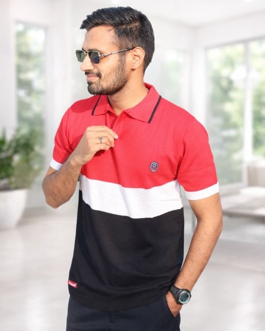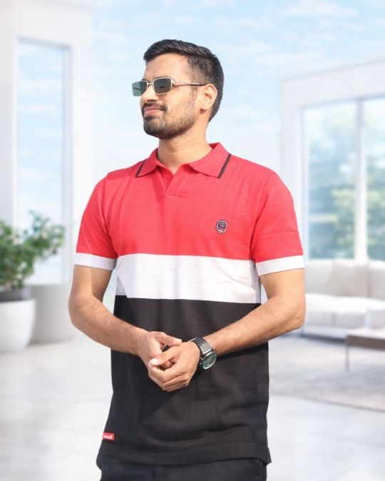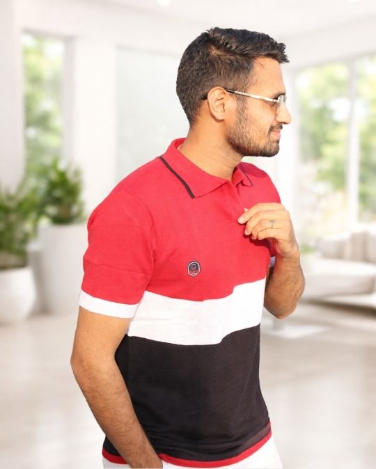 Men’s Classic Knit Polo Neck Color Block Half Sleeves T-Shirt