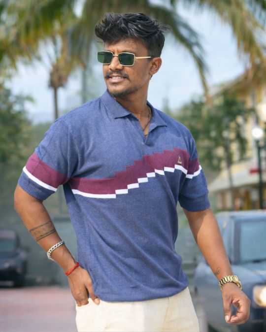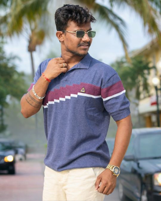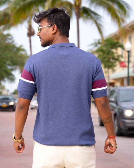 Men’s Premium Geometric Knit Polo Neck Half Sleeves T-Shirt