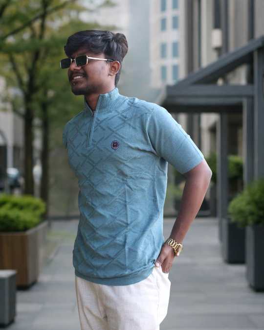 Upgrade your wardrobe with the Modern Textured Zip Polo T-Shirt, designed for a refined yet sporty appearance. This t-shirt features a structured high neckline with a half-zip closure, offering a modern twist on the classic polo style.