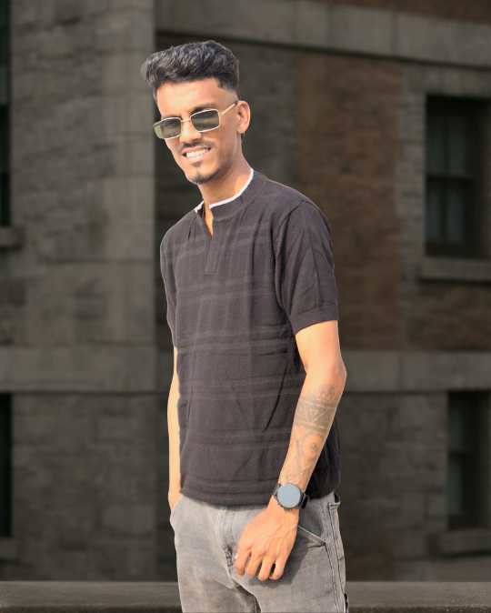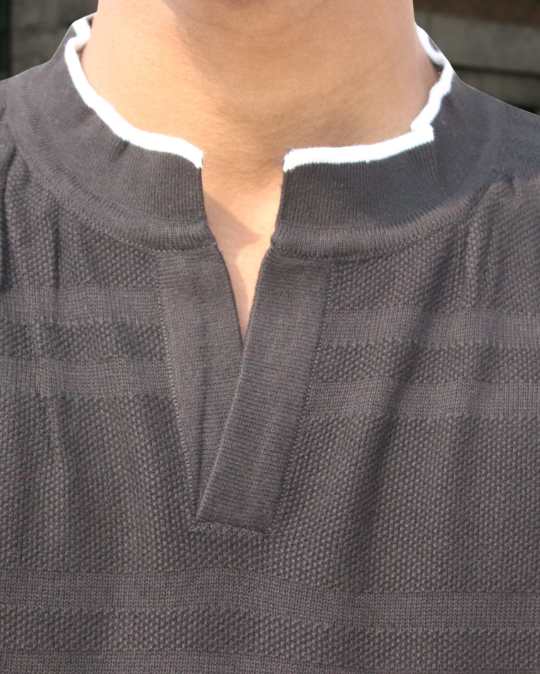 Upgrade your everyday wardrobe with the Urban Edge Textured Half Placket T-Shirt. Designed with a premium knitted fabric, this piece features a subtle horizontal self-texture pattern that adds depth and character without being overpowering. The structured half placket neckline gives it a modern, semi-formal touch, making it perfect for both casual outings and smart casual occasions.